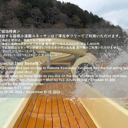 O centro de Hakone pode ser alcançado dentro de 15 minutos a pé deste hotel, e locais culturais como Museu de Arte Pola ficam a cerca de 10 minutos de distância do carro. O Aquário de Hakone, a 4.8 km de distância, é definitivamente imperdível para turistas em família em Hakone. Kowakien Miyamafurin de Hakone também fica a nas proximidades de do Lago Ashi. O hotel de 34 quartos está a cerca de 15 minutos andando de Museu do Pequeno Príncipe e outras atrações principais de Hakone. A paragem mais próxima é Kowakien, a 350 metros de distância.
